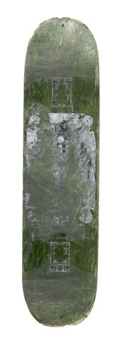 In my recent work, Divine Decks, Tampa, I am pushing this notion of a collective. My project incorporates skateboards donated to the Boards for Bros Headquarters: The Skate Park of Tampa (SPoT), which attracts skaters from around the world. This project will also have a book published that incorporates 100 skateboards that have been at least twice donated. Once to Boards for Bros, who in turn donated to me. I intend to find out what my project might reveal if an installation and a book are created from other chapter locations of the Boards for Bros. organization. What kind of information would surface if all the “dead” skateboards could be collected and reused? I aim to stir feelings of appreciation, interest, and imagination, but also to collect the memories and data that have been preserved. I believe that skateboards can be a model or reference, that they have the ability to show us symbols created by their owners, representing human or social behavior. Each deck has an abundance of information, there have been marks made, gouges, scratches, cracks, splinters, water damage and more. But there are also the cosmetics of each that can capture the authenticity of the skater. The griptape(top) and graphics(bottom) are covered with carefully placed stickers, drawings and graffiti, making every deck more unique. These symbols and marks are a key in better understanding skate culture and its influence in our lives.